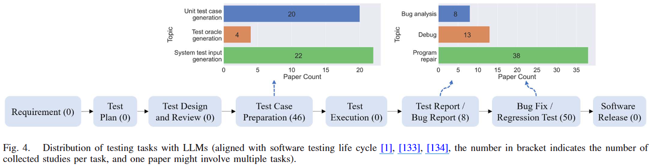 Software Testing With Large Language Models: Survey, Landscape, and Vision에 따르면 2020년부터 2023년까지 1편, 2편, 19편, 82편의 관련 연구가 발표되어 해당 분야에 대한 관심과 주목도가 어느정도 있고, 급격하게 증가하고 있음을 시사한다.